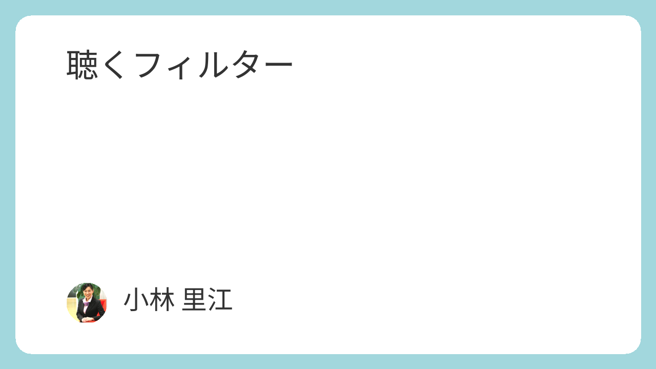 コーチもパートナーとして、聴くのは冷静に、ニュートラルに聴いているつもりでも、フィルターを通して聴いているんだという自覚は必要な気がします。