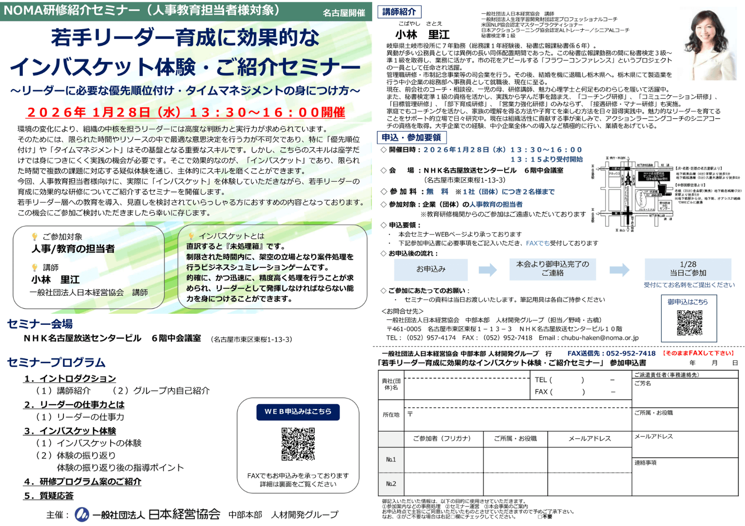 2026年1月28日に名古屋で、「インバスケット体験」の公開セミナーを開催いたします。